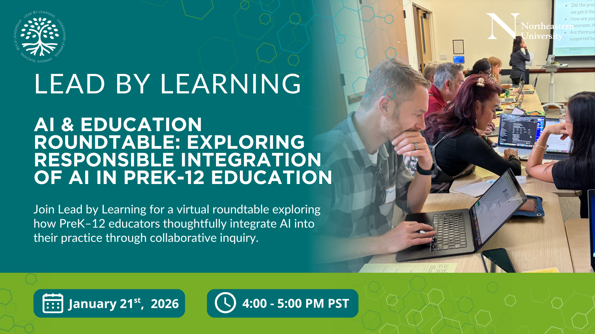 PreK–12 classroom educators, instructional leaders, coaches, principals, district and county leaders, Northeastern University faculty in AI, sister organizations, funders, and education enthusiasts.